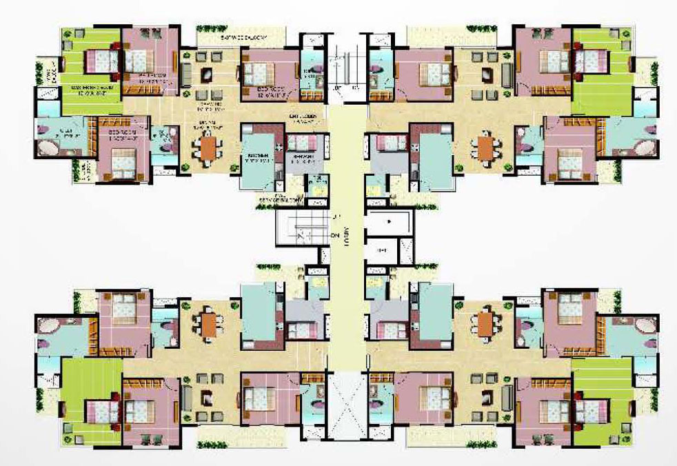 4 BR+SR Typical Floor Cluster Plan | 2350 sq ft. | Flat | View Plan | Ask For Detail |