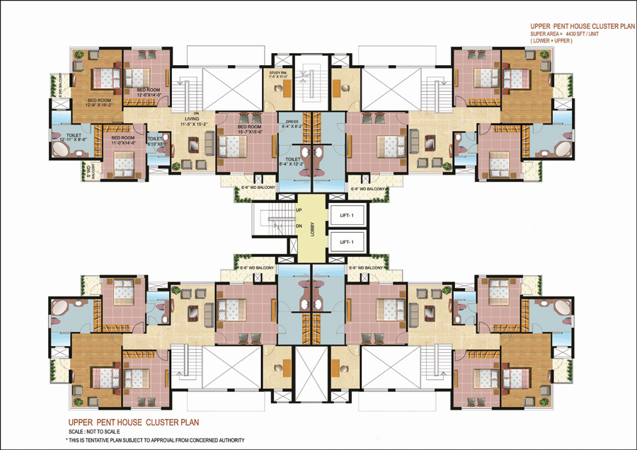 Upper Pent House Cluster Plan | 4430 sq ft. | Flat | View Plan | Ask For Detail |